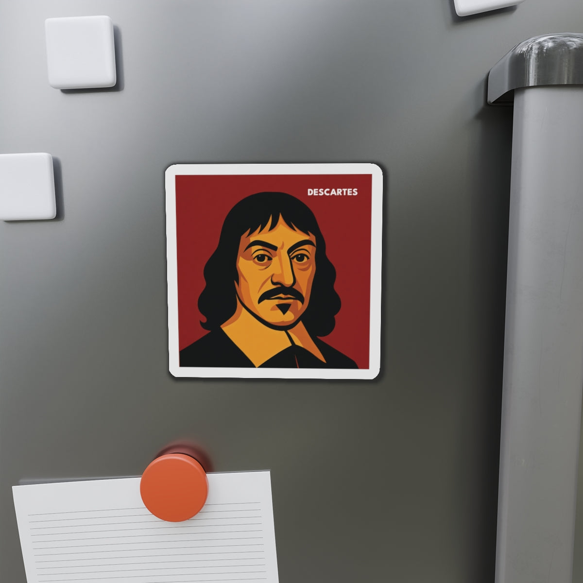 This Descartes magnet features a bold, graphic portrait, part of the Architects of Reason collection. A distinctive gift for philosophy lovers, mathematics enthusiasts, and educators. Available in three sizes.