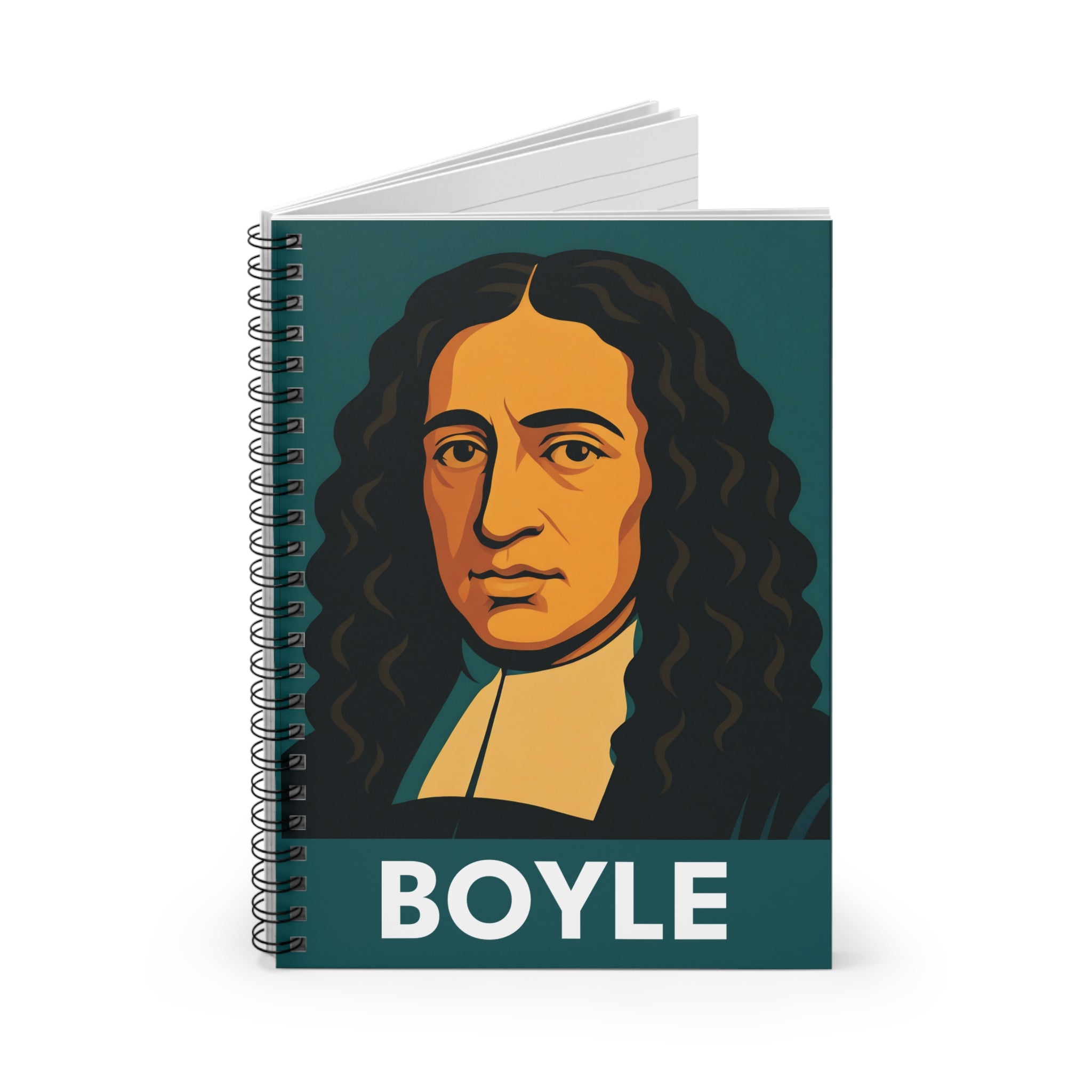 This Boyle spiral notebook features a bold, graphic portrait rendered in the distinctive style of the Architects of Reason collection - vivid color, strong lines, and the visual weight of a figure who changed science forever. A distinctive gift for science lovers, chemistry students, and anyone who keeps their best ideas in a notebook. Built for everyday use - lectures, research notes, creative work, wherever serious thinking happens.