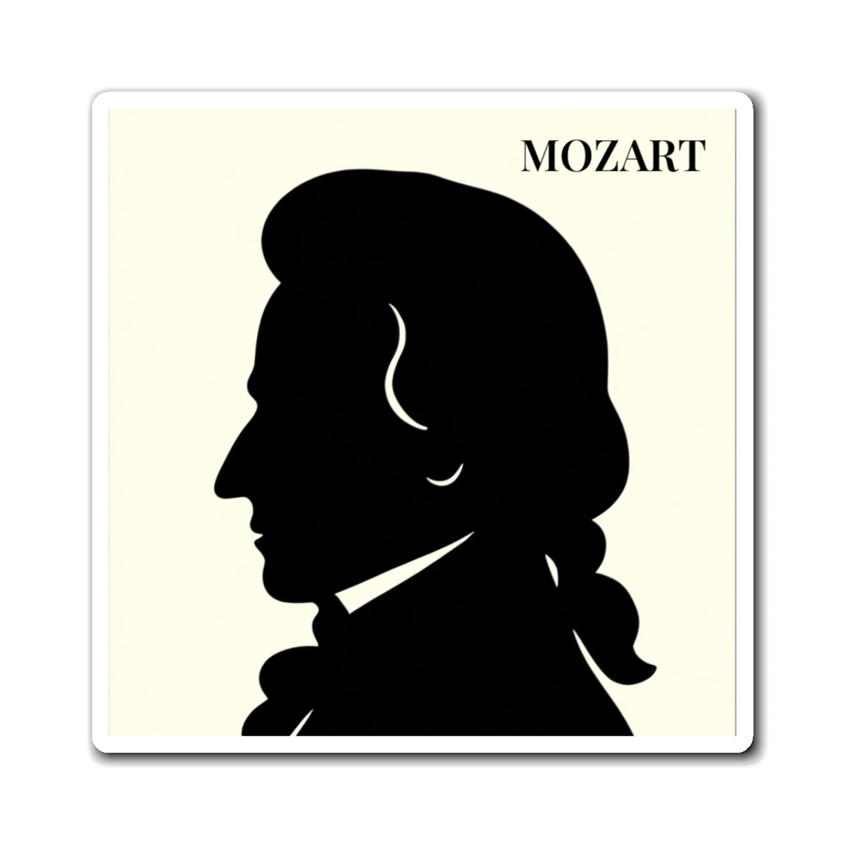 This Mozart magnet features an elegant silhouette portrait, part of the Silhouettes of Sound collection. A distinctive gift for classical music lovers, musicians, and music teachers. Available in three sizes.