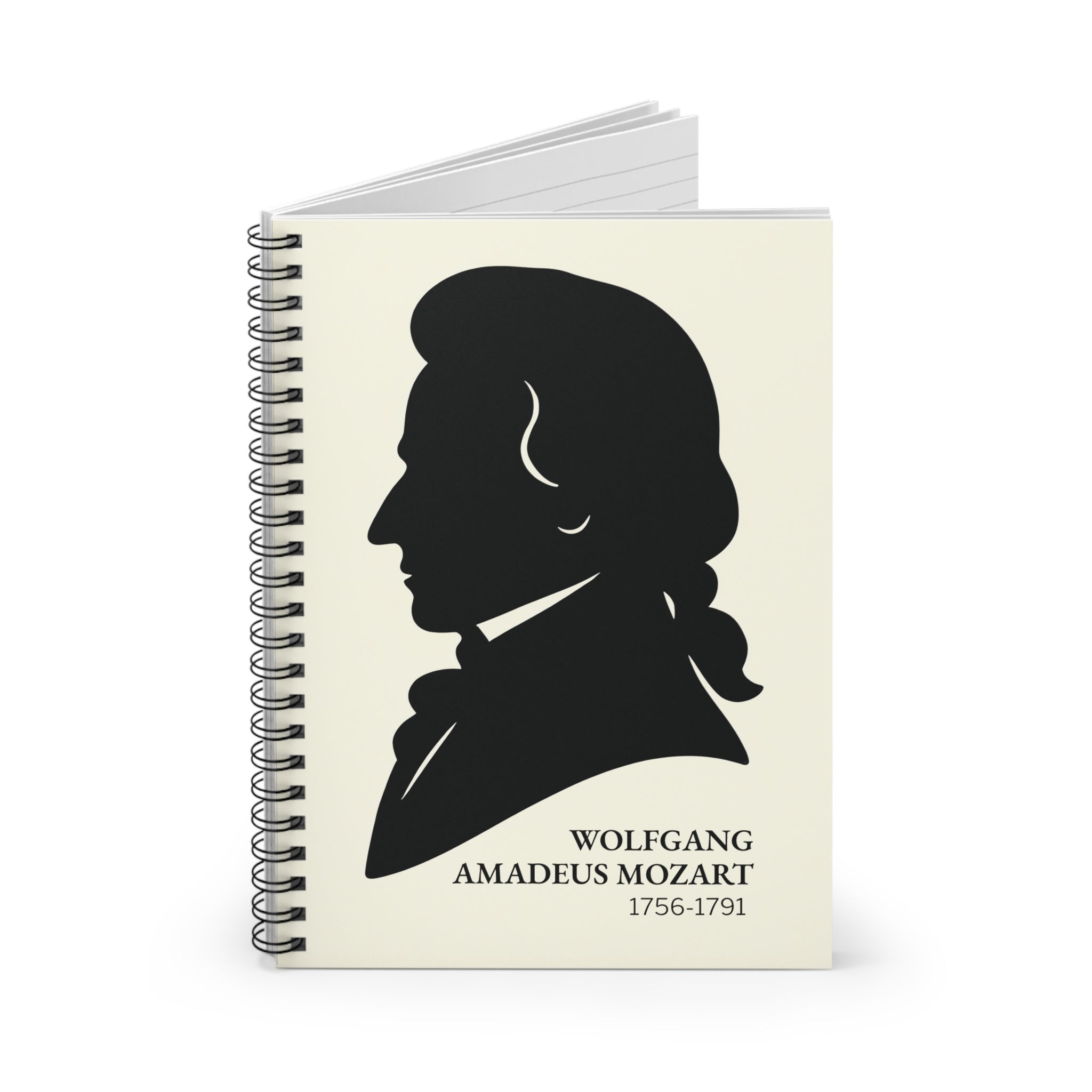 This Mozart spiral notebook features an elegant silhouette portrait of one of history's most gifted classical composers, part of the Silhouettes of Sound collection. A distinctive gift for classical music lovers, musicians, and anyone who keeps their best ideas in a notebook. Built for everyday use - lectures, composition notes, creative work, wherever serious thinking happens.