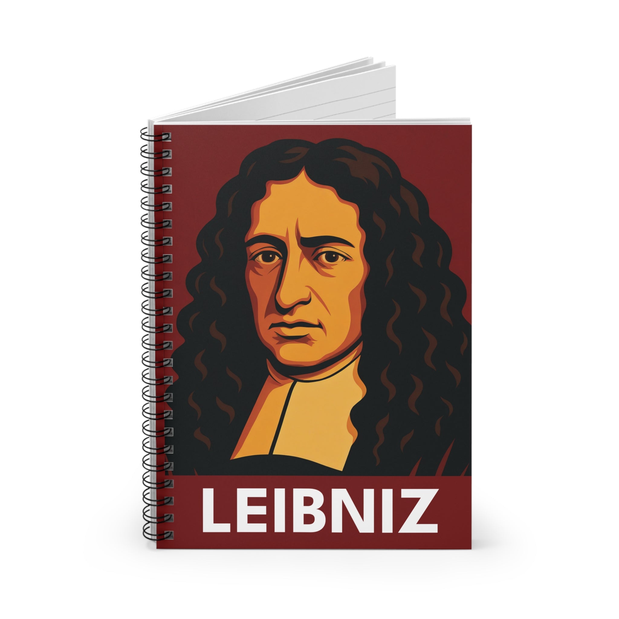 This Leibniz spiral notebook features a bold, graphic portrait rendered in the distinctive style of the Architects of Reason collection - vivid color, strong lines, and the visual weight of a figure who changed mathematics, logic, and philosophy forever. A distinctive gift for mathematics lovers, philosophy students, and anyone who keeps their best ideas in a notebook. Built for everyday use - lectures, research notes, creative work, wherever serious thinking happens.